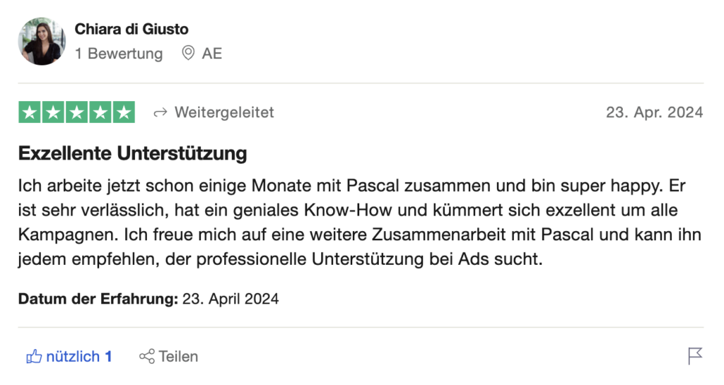Der TÜV Rheinland hat bestätigt und zertifiziert, dass die Dienstleistung und das Wissen von Pascal Mayer über Performance Marketing auf dem allerhöchsten Level einzuordnen ist.