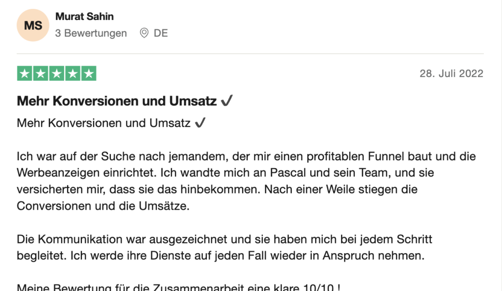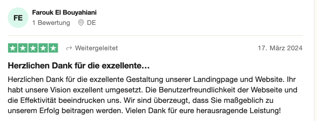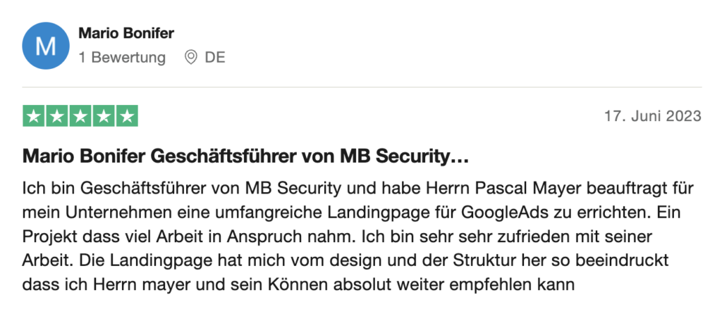 Klienten berichten, dass er schnell in der Umsetzung ist, sich in andere Unternehmen und Angebote hineinversetzen kann und auf guten Support und reibungslose Kommunikation achtet.